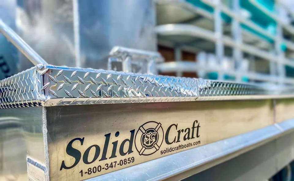 The pipe furniture is welded to the rails and deck for improved appearance and exceptional durability. SolidCraft no longer uses fasteners to adhere the furniture to the deck.